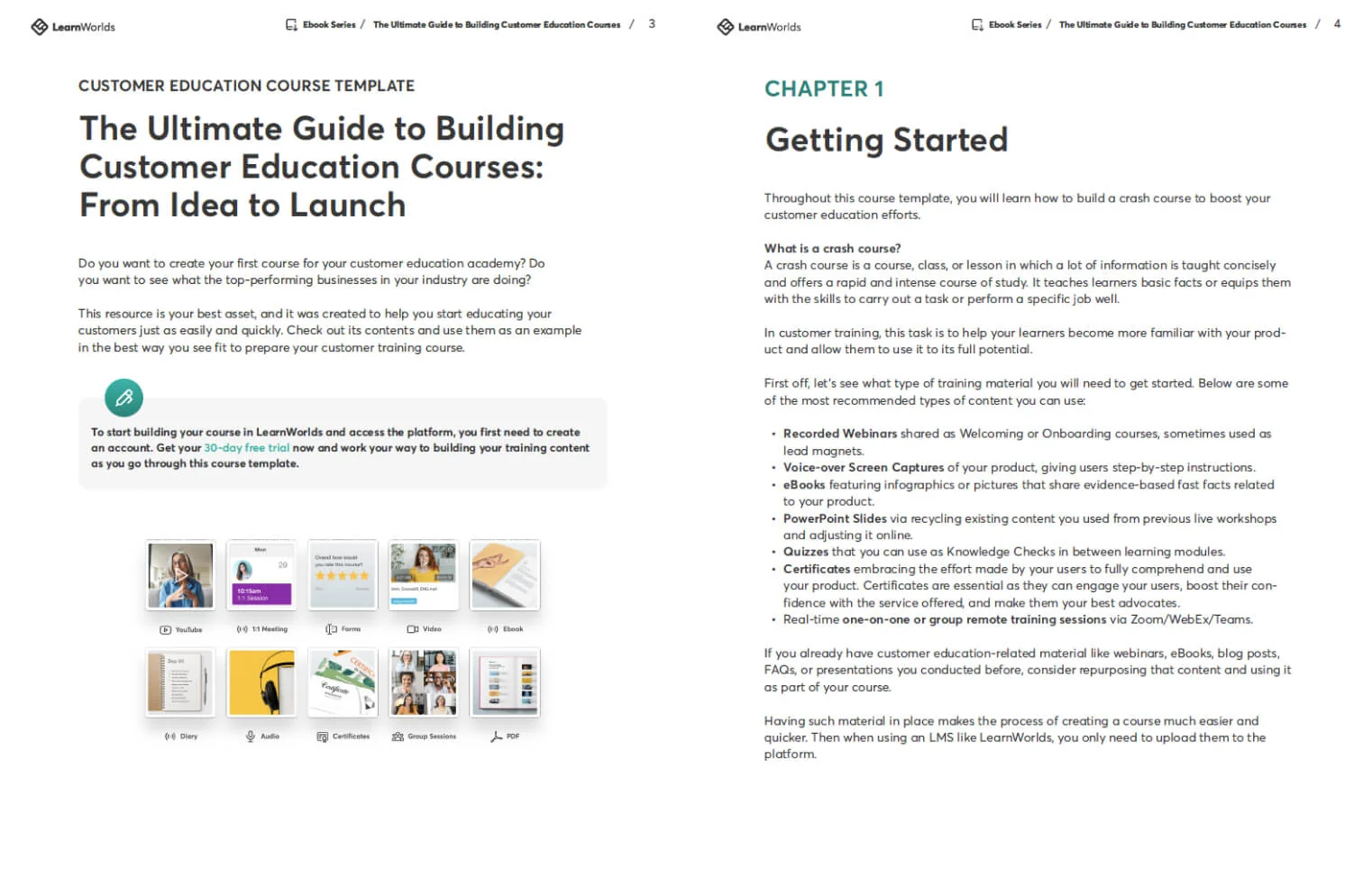 From Idea to Launch. Create engaging & effective online courses for your customer education programs with this handy step-by-step guide. The guide includes templates from LearnWorlds customers to help inspire & assist you with the process.