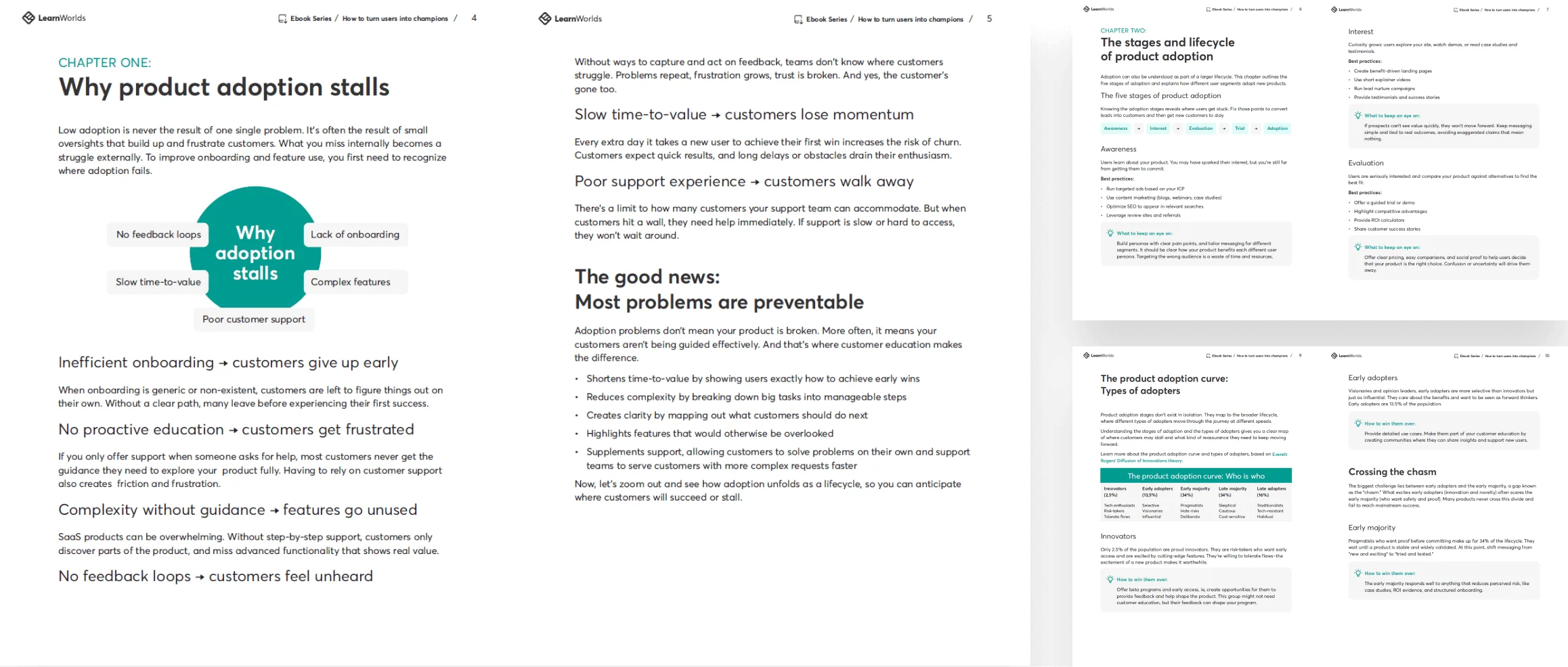 Product adoption doesn’t fail because of the product alone. It fails when customers aren’t guided to value. This ebook shows you why adoption stalls, how to guide customers through each stage, and how education builds habits that last.