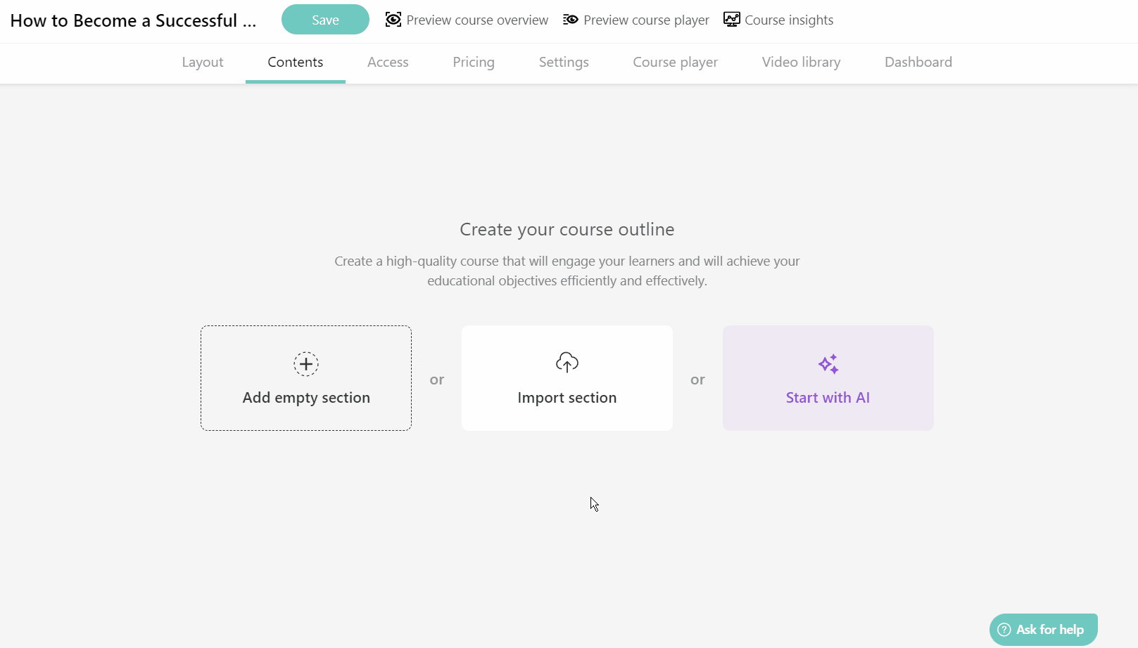 Before you begin building your course, make sure you define a topic for it, and which learning activities you’d like to include – ebooks, assessments, videos, etc.