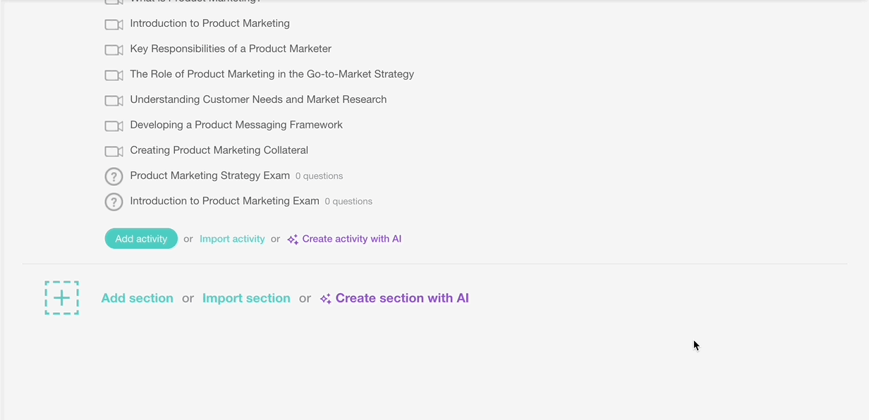 When creating a new section or activity, you can set the tone of voice and much more. Learn more about how to use AI to create your course outline.