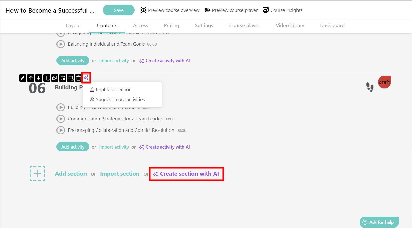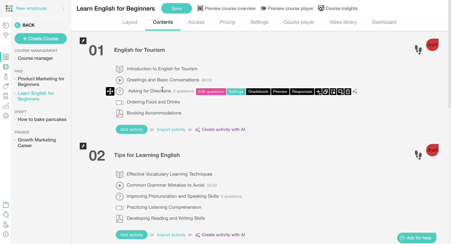 💁 I’ve already written part of my course. Can I use AI Assistant to improve the structure, add activities, and set a tone of voice?