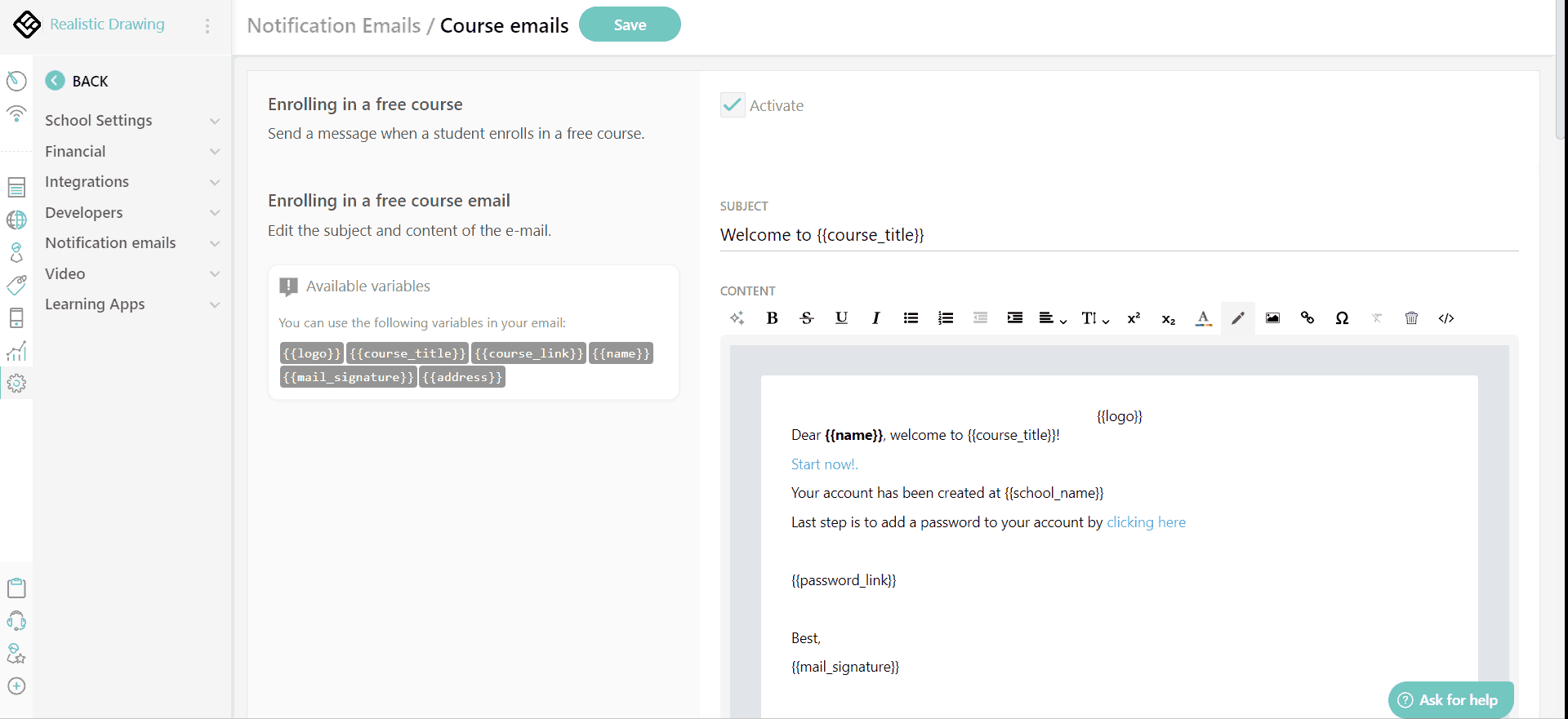 Yes. Right within the LearnWorlds platform, you have the capability to automatically send notification emails to your users when specific significant events occur, such as course enrollment, registration, subscription renewal, and more.