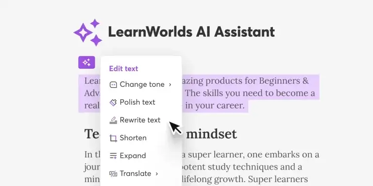 In the ever-evolving landscape of e-learning, LearnWorlds’ AI Assistant emerges as a powerful ally. It’s not just about harnessing artificial intelligence; it’s about using it effectively to enhance your educational offerings.