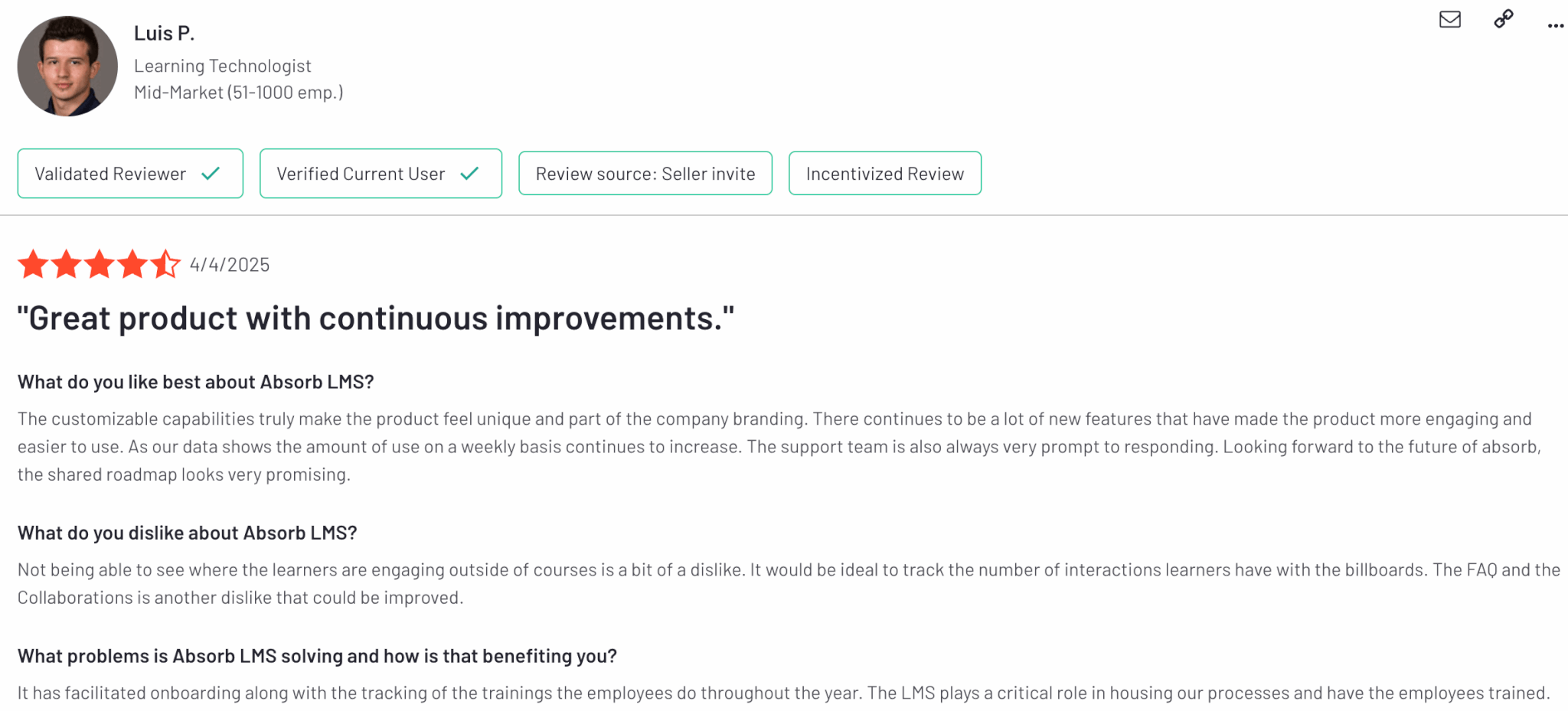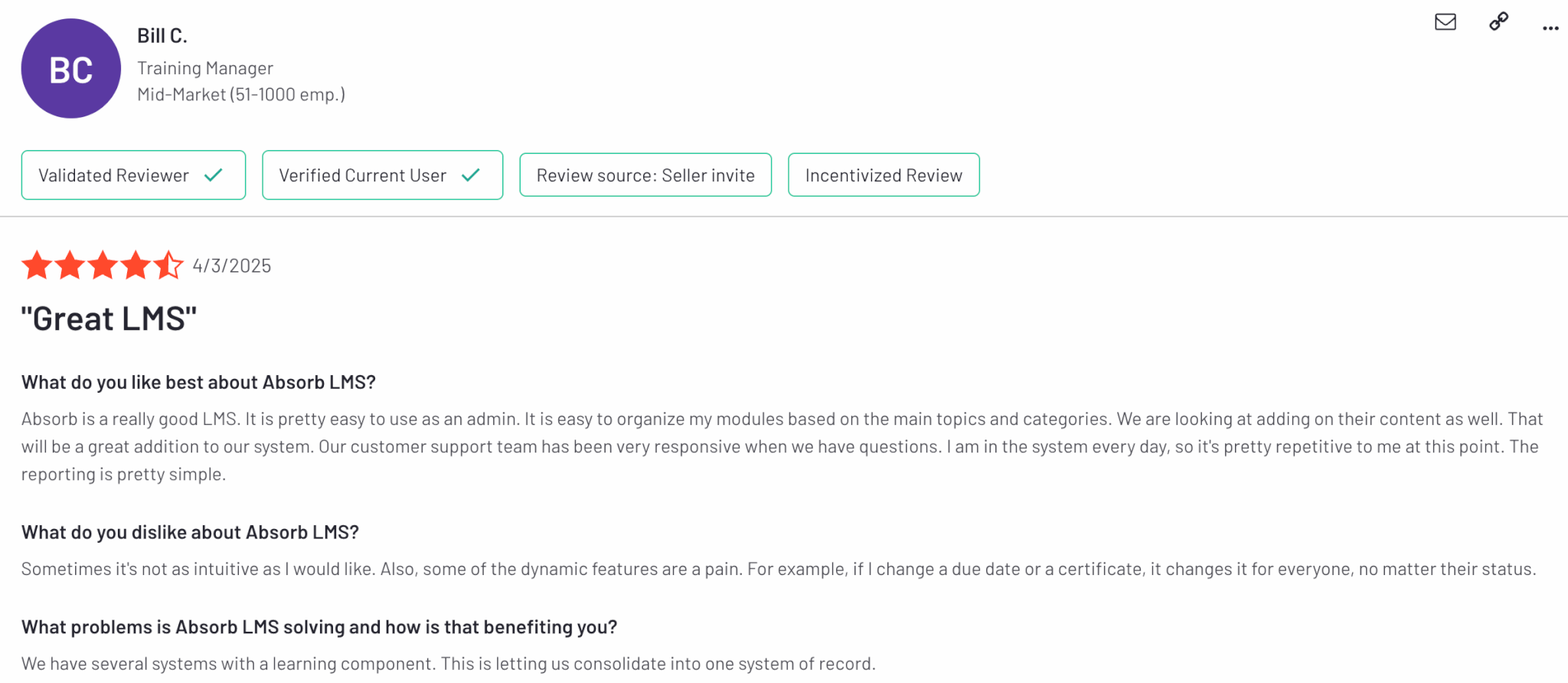 Litmos is rated 4.3 out of 5 on G2.