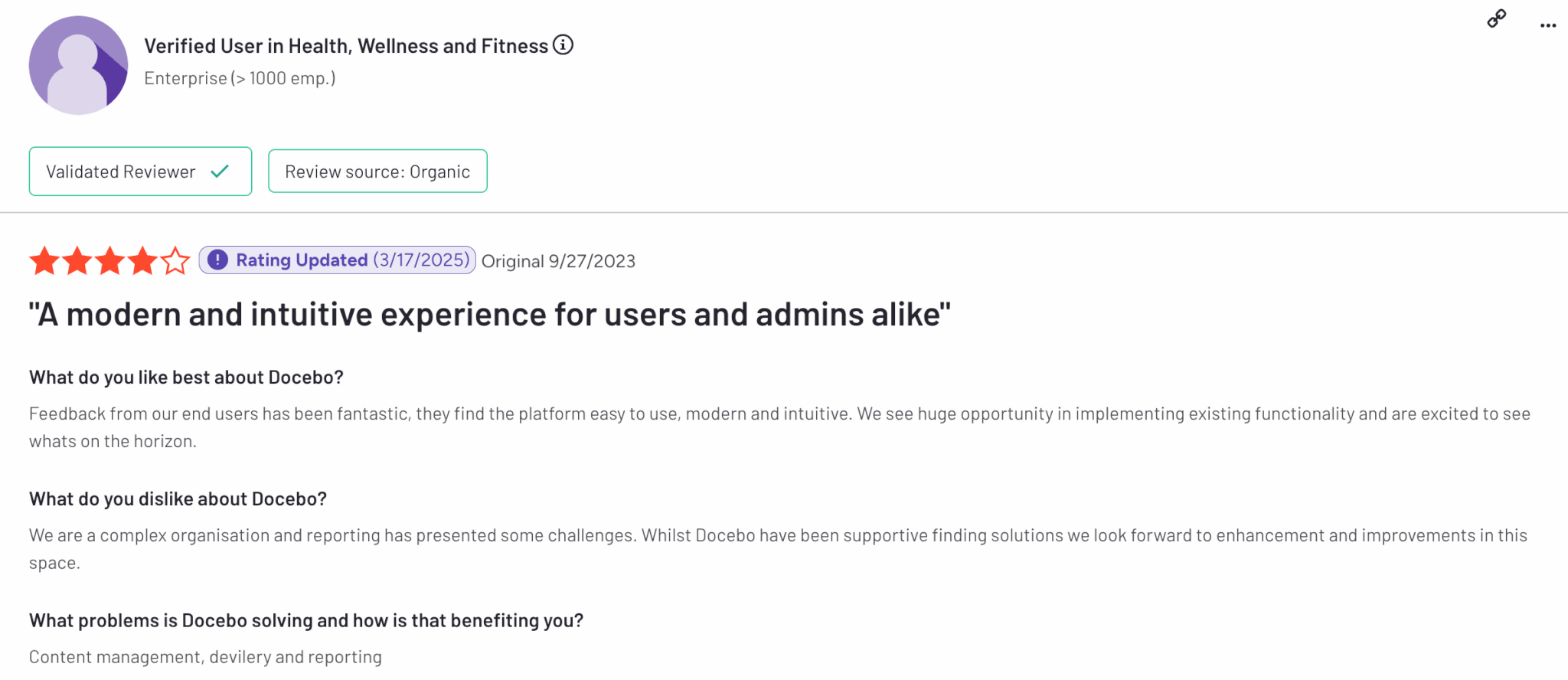 Docebo is rated 4.3 out of 5 on G2.