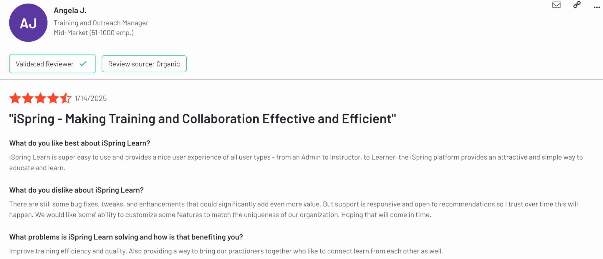 iSpring is rated 4.6 out of 5 on G2.