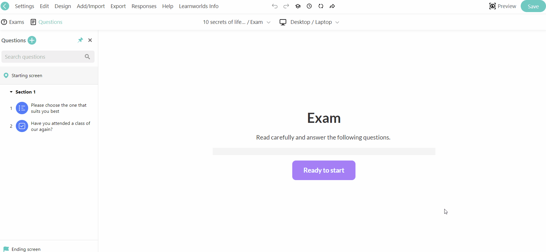 LearnWorlds is one step ahead with its own powerful Assessment Builder, allowing you to create multiple types of assessments by choosing from 16 diverse question types including multiple choice, multiple answers, short answer, match questions, and even video or audio questions, graded SCORM assessments, self-assessments, and more!