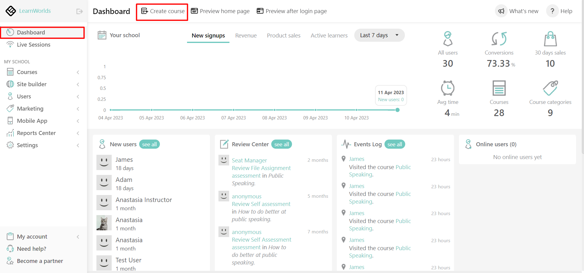 Start today by claiming your free 30-day trial with LearnWorlds.