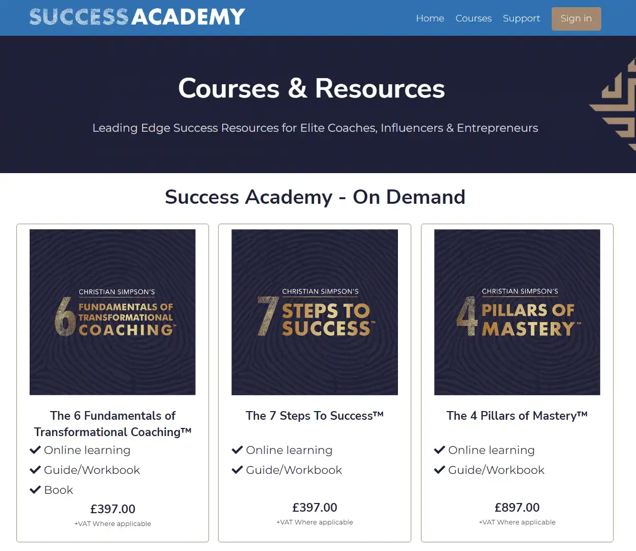 Christian also gave us a brief overview of his SUCCESS ACADEMY, built with LearnWorlds, where he sells some of his courses and services. Let’s see what products he sells and how he has structured his offerings so you get an idea of what works marketing-wise.
