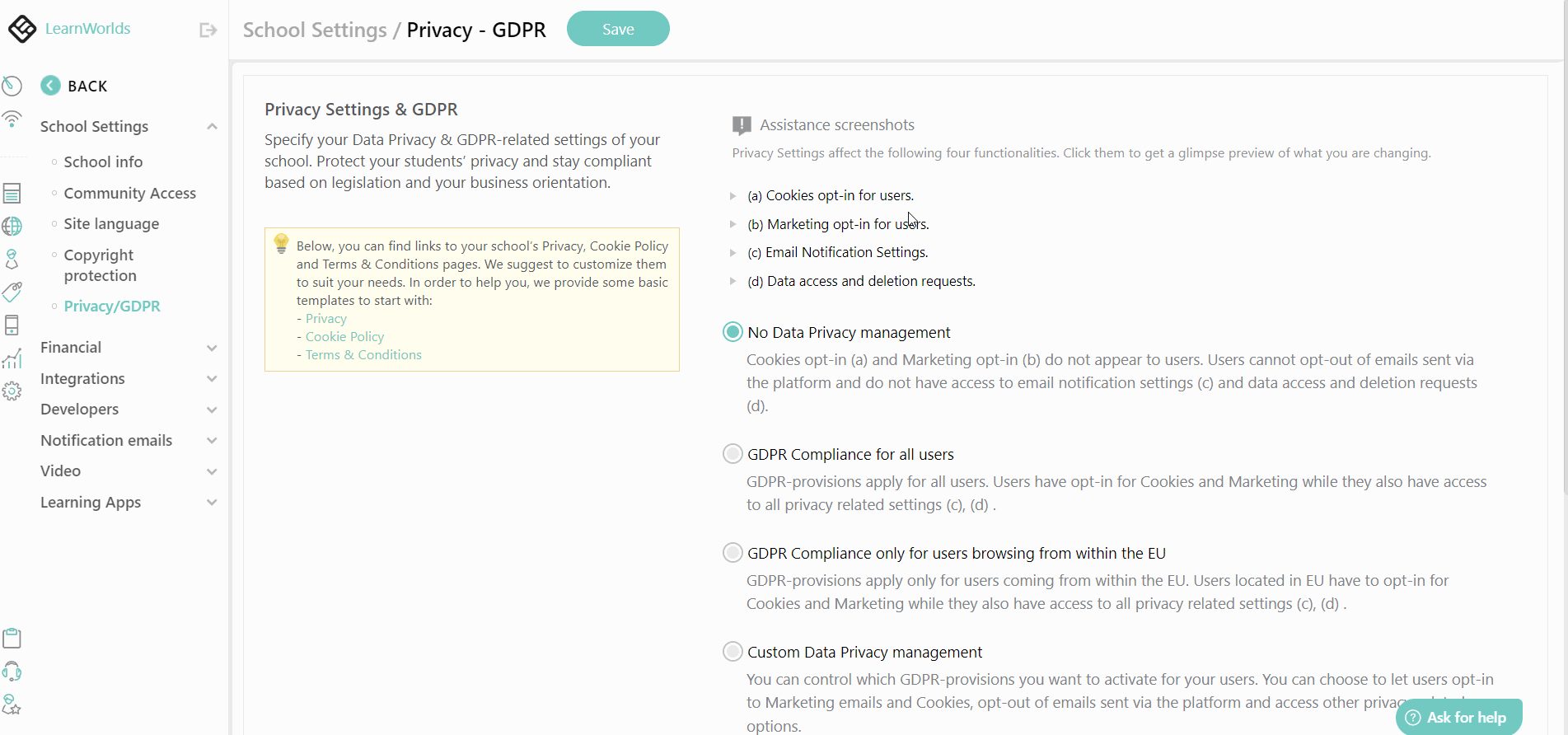 LearnWorlds built-in intellectual property & copyright protection