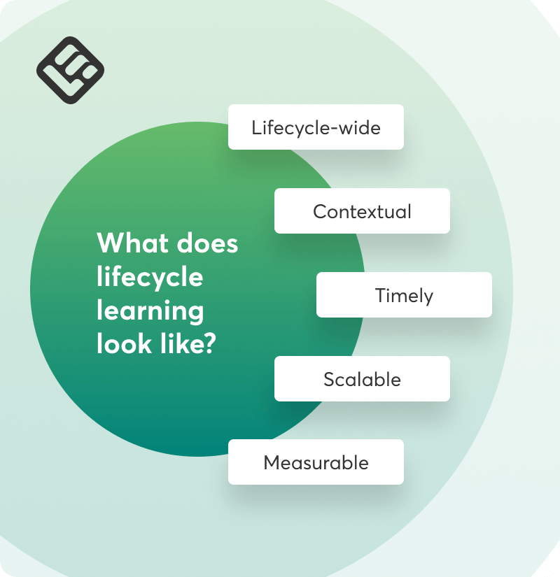 - Lifecycle learning works when it’s timely, contextual, with automated delivery and a measurement method in place.
