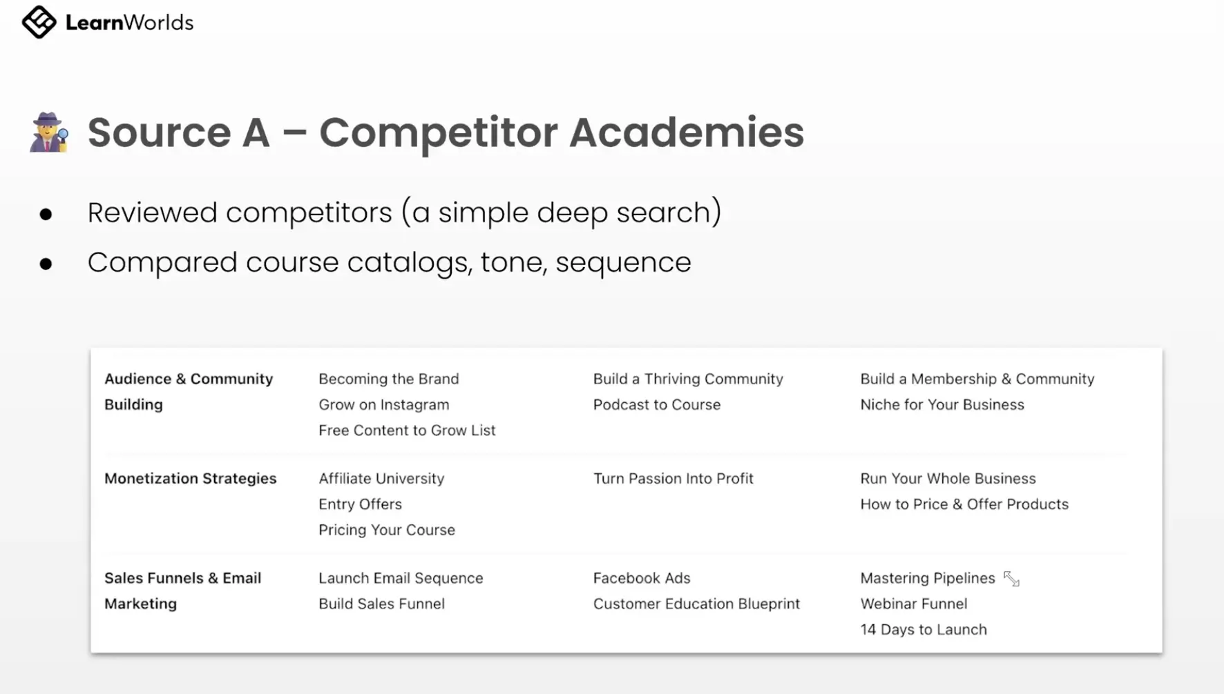We used AI to analyze what courses our competitors are offering, which topics they were tackling, and their tone of voice. This would give us an idea of what matters the most to users of products similar to ours.