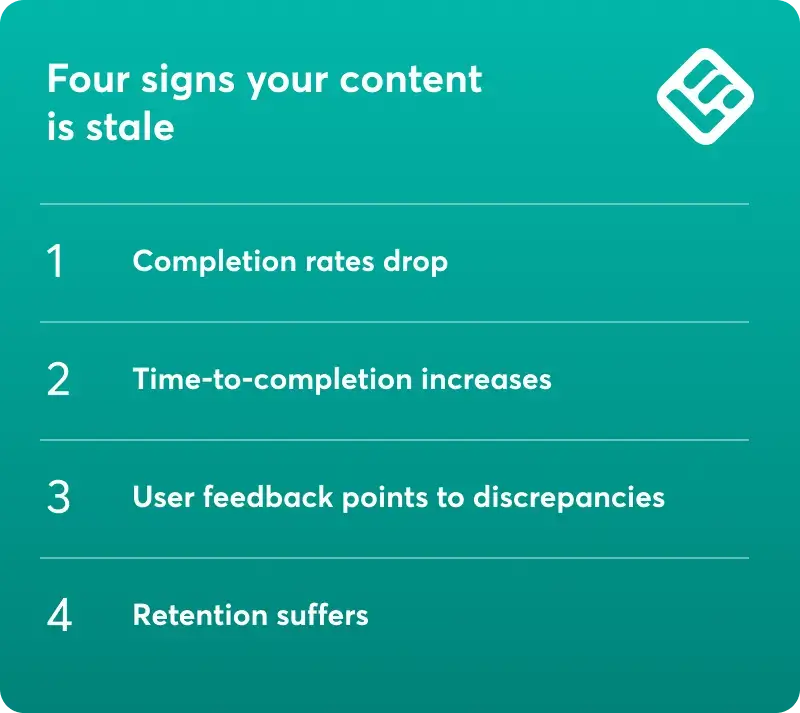 Even the best training materials age quickly as the product evolves and customer expectations shift. These four signals tell you it’s time to revisit your content:
