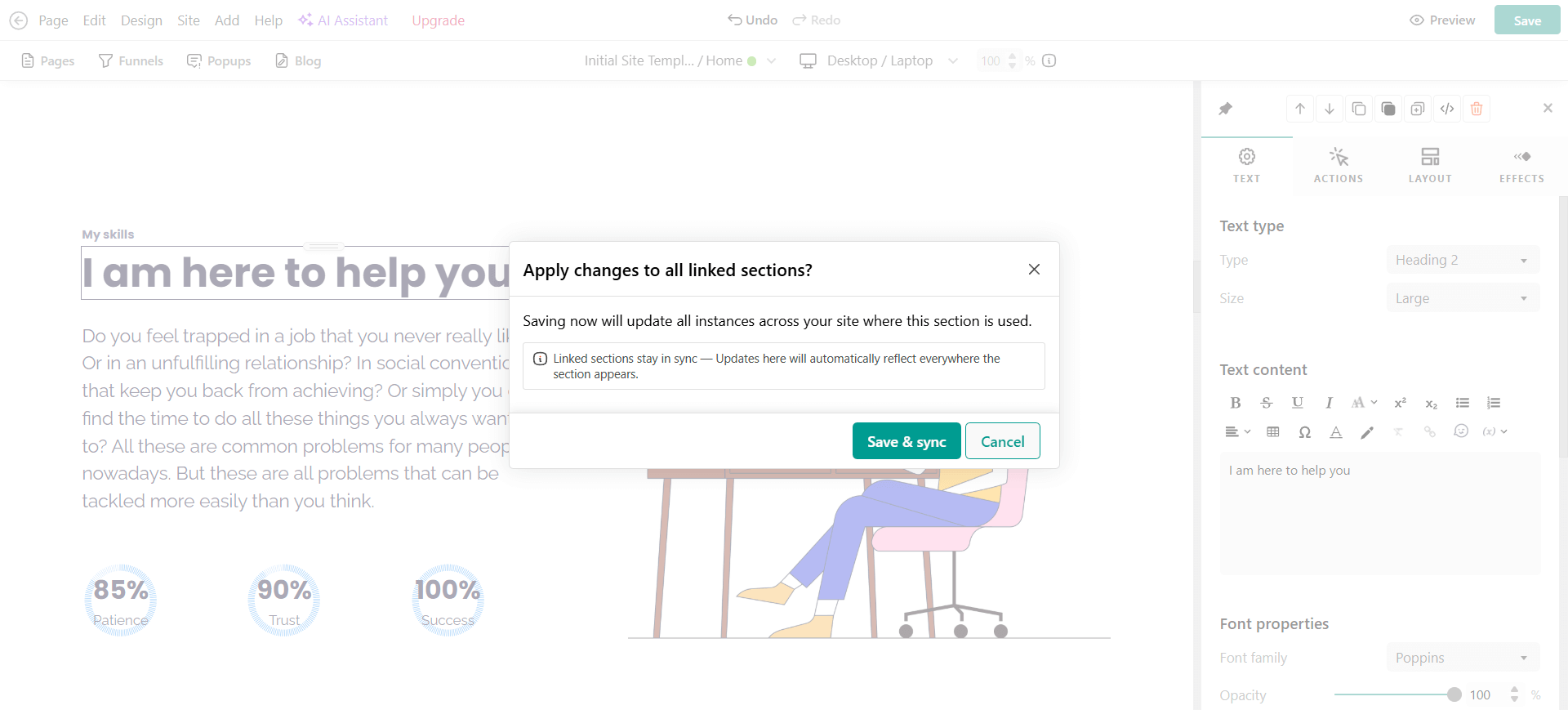 Once inserted, a Template Section becomes independent. You can edit it freely without affecting other pages.