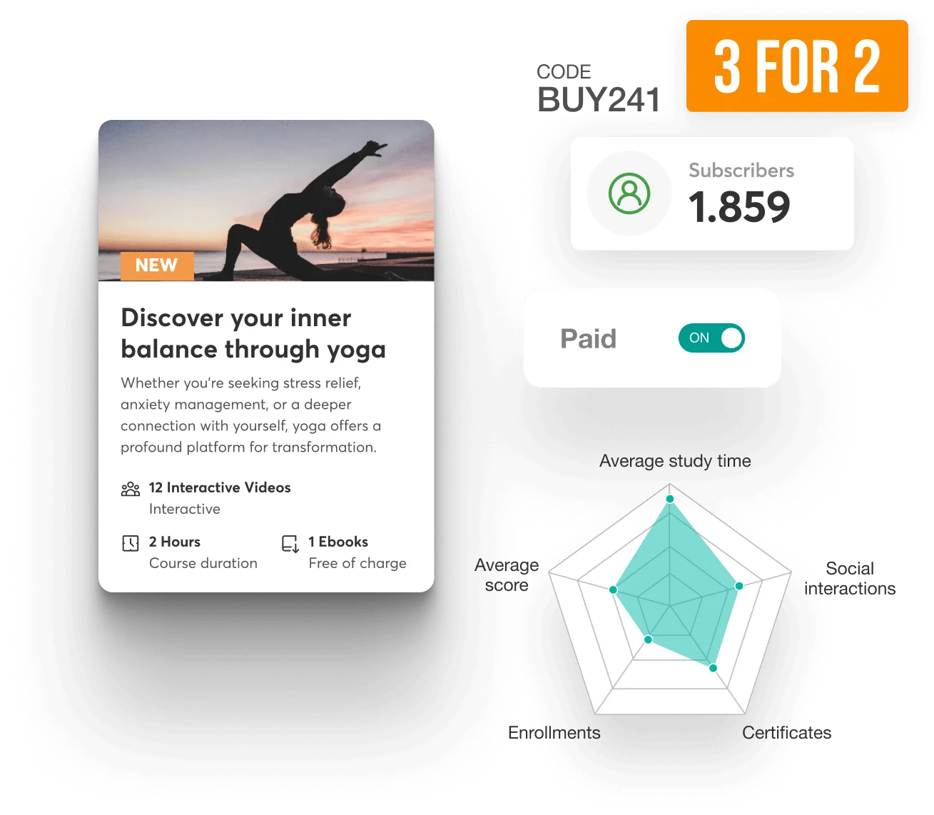 Leverage LearnWorlds' versatile marketing tools to design unmatched course offerings. Bundles, subscriptions, and coupons𑁋right at your fingertips! Everything you need to make money, earn smart, and build recurring revenue.
